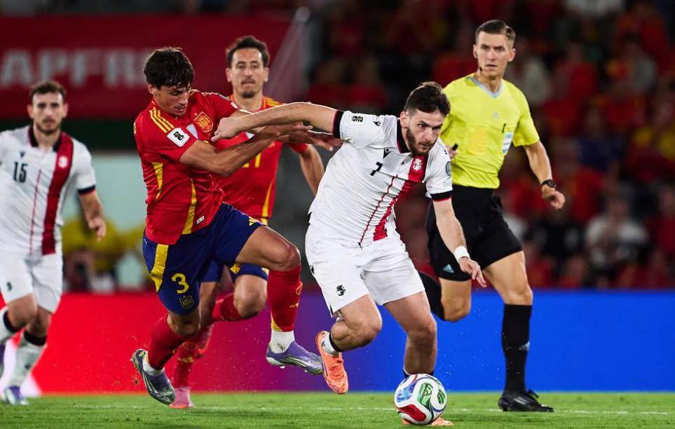 世界排名第一的西班牙队,在主场迎战排名第六十八的格鲁吉亚队。西班牙队几乎完全掌控了比赛节奏,高达80%以上的控球率彰显了其统治力。上半场,西班牙队完成了14次射门,其中3次命中目标,并且成功限制了对手的一次射门机会。比赛的僵局在第24分钟被打破,佩德里送出精妙挑传,勒诺尔芒心领神会做球,皮诺冷静推射破门,为西班牙取得1-0的领先。仅仅四分钟后,费兰-托雷斯为球队赢得点球机会,但他亲自主罚的点球被格鲁吉亚门将玛玛达什维利扑出。易边再战,第62分钟,奥亚萨瓦尔通过一记势大力沉的任意球爆射,将比分扩大到2-0。这个比分最终保持到终场,西班牙队以一场完胜继续稳固其小组头名位置。