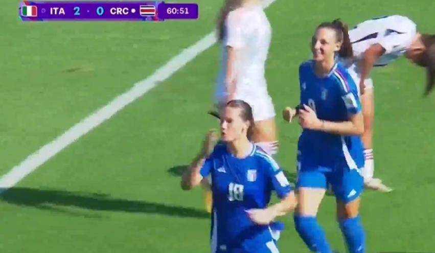 第57分钟,中国队再次扩大比分优势。 替补上场的方珍珠与曾屹婕在左路配合后,将球传给中路的陈睿琳,陈睿琳送出精准挑传,周欣怡插入禁区后点凌空垫射破门,完成个人本场比赛的梅开二度,中国队3-0领先。