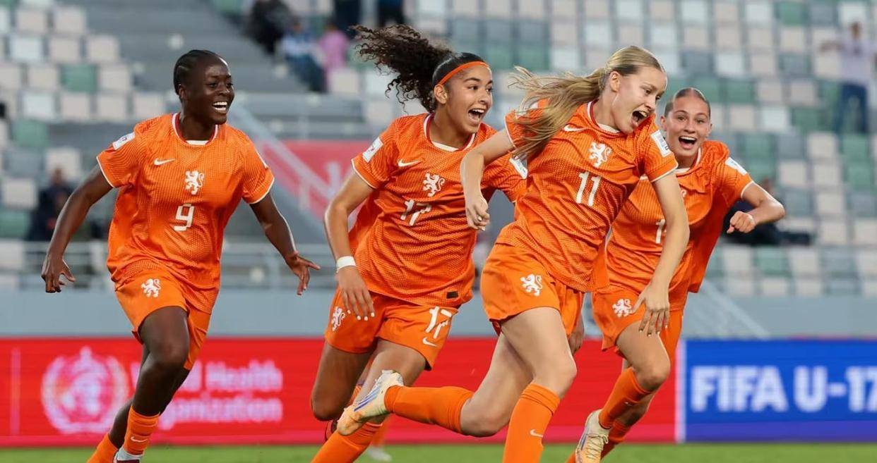 荷兰队首次参赛,小组赛曾0-5惨败给朝鲜,以“最佳小组第三”惊险出线决赛对法国更神奇,补时0-2落后,第93分钟、第98分钟连进两球拖入点球,最终9-8晋级。 门将扑出制胜点球后,全队像疯了一样冲进场内。