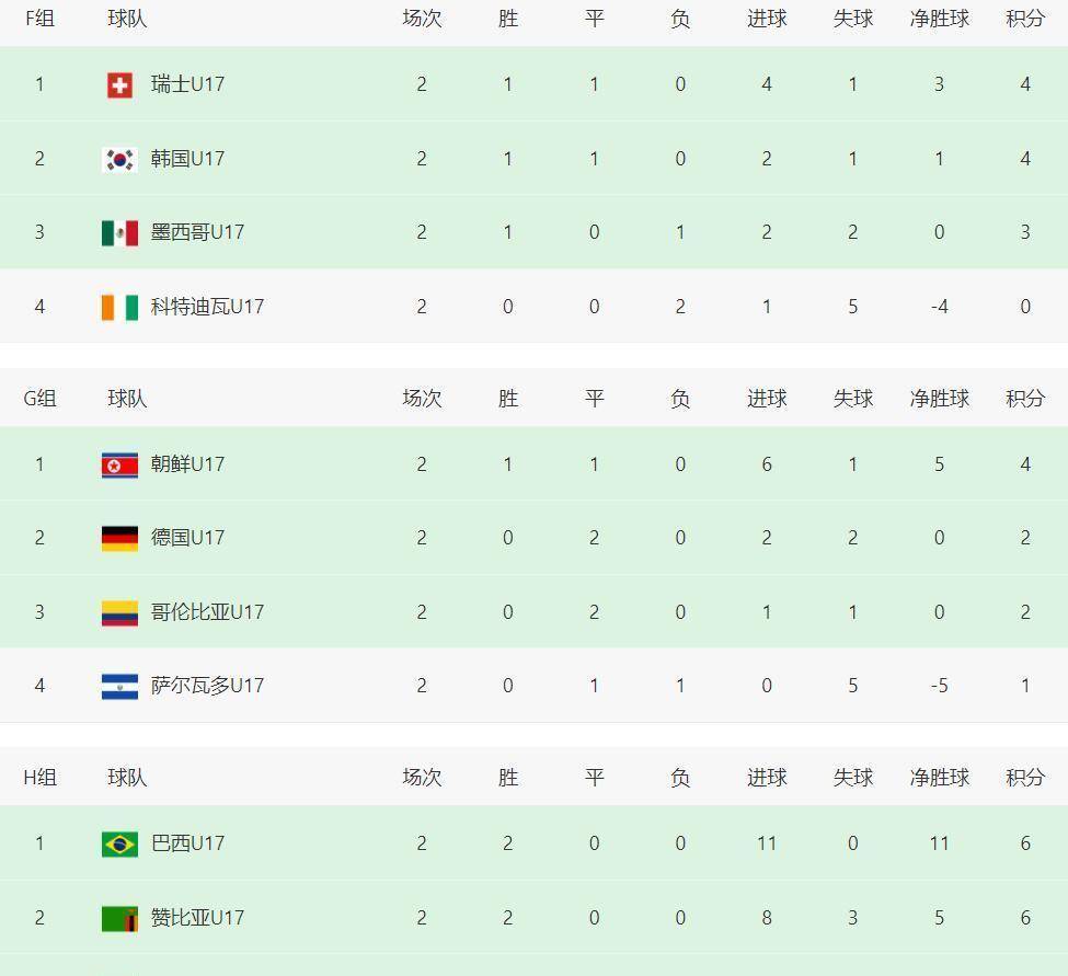 再说朝鲜队和德国队那场球。 朝鲜队首轮可是5比0大胜萨尔瓦多,状态正佳。 对阵德国队,他们虽然先丢了球,但全队一点没慌,硬是拼到了第81分钟,由韩一福一脚世界波把比分扳平了。 最终1比1的比分,让朝鲜队两轮积4分,力压德国排在小组头名。 朝鲜队这是第五次参加世少赛,最好成绩是2005年的八强,这次开局这么猛,说不定能走得更远。