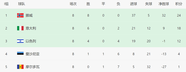 本场过后,挪威队在本届世预赛8场全胜,期间他们双杀了不可一世的意大利队,彻底锁定小组头名,顺利晋级世界杯。在这8场比赛中,挪威队的表现几乎完美,他们能最终小组出线,绝对是实至名归。至于意大利队,他们在自己的主场,眼睁睁看着对手疯狂庆祝,场面确实尴尬。这支欧洲传统豪门,可谓是灰头土脸,这场惨败,绝对是把意大利队打回原形。之前他们一度取得6连胜,看起来已经找回了状态,如今又被挪威队踢回了谷底。