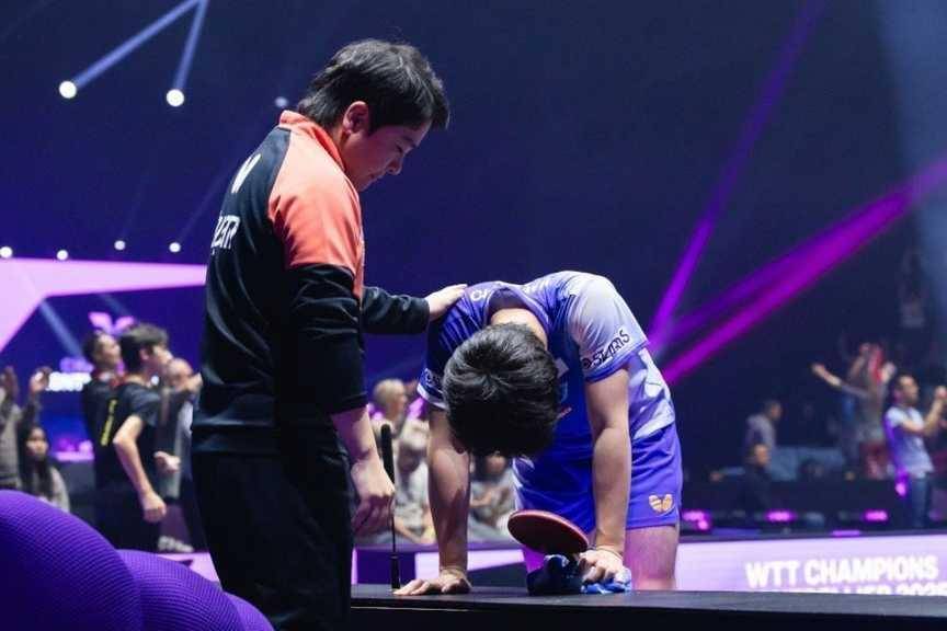 而张本智和,则不幸地成为了这场惊天逆转中最具悲彩的背景板,在单打和双打中连丢六局,品尝到了职业生涯中罕见的苦涩。