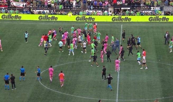 冲突期间,阿维莱斯与另一名对手发生冲突,并尝试挥拳击打对手,随后一名西雅图海湾人球员用一个身后抱摔摔倒了迈阿密国际球员托马斯-阿维莱斯。