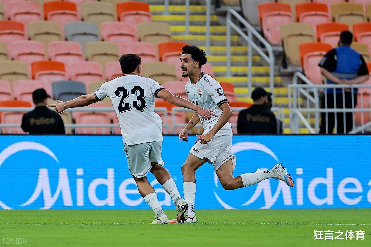 - 第75分钟,伊拉克打破僵局。伊拉克在右路压上,阿明回传到中路,伊克巴尔在禁区弧顶接球持续摆脱防守后,左脚劲射直奔球门左下角,皮球洞穿网窝,伊拉克1-0领先。