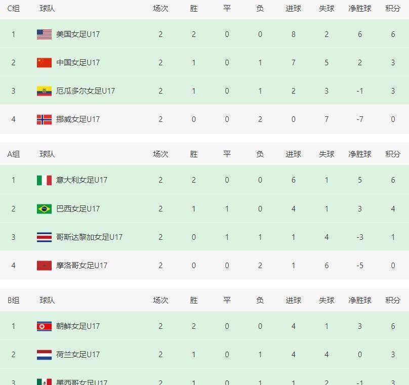 随着第二轮比赛结束,本届U17女足世界杯的出线形势逐渐明朗。美国队和朝鲜队凭借两连胜,已经提前一轮锁定十六强资格。