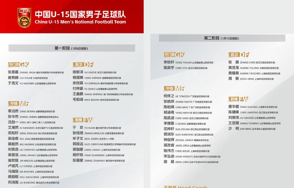 世界杯,2026世界杯,世界杯直播,世界杯投注,世界杯盘口,世界杯比分预测,聚焦2026年世界杯,提供最全面的赛程、直播、比分、投注推荐与爆冷预测信息。中文用户专属足球社区,助您精准分析,轻松购彩。就在几个小时前,中国U15男子足球国家队最新的集训大名单正式公布,共有54名优秀小将入选。这批球员将于2026年1月7日至2月11日在深圳集中训练,整个集训分为两个阶段,主要目的是为备战2028年U-17亚洲杯做准备。然而令人颇感意外的是,上个月刚获得国内重量级冠军的恒大足校U15竟然无人入选,这究竟是怎么回事呢?