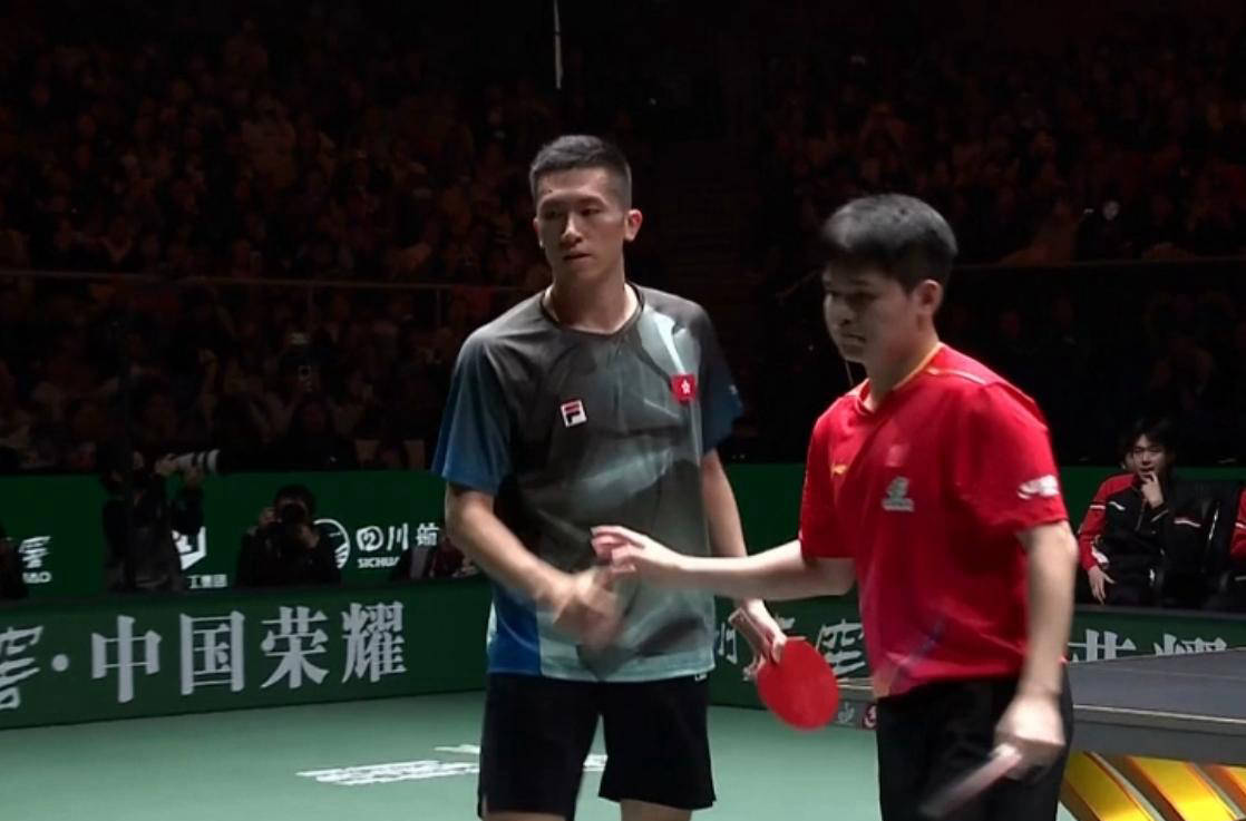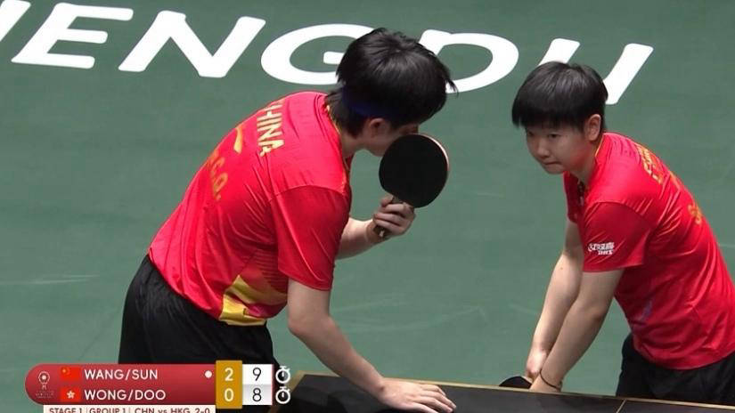 首盘男单女单混双组合同样重要。作为混双项目最顶尖的王楚钦/孙颖莎面对黄镇廷/杜凯琹,第一局双方比分胶着,黄杜组合几度领先,但王孙组合沉着应对,关键时刻连追数分反超,以12-10艰难拿下一局;第二局则是一边倒的态势,王楚钦和孙颖莎早早建立领先优势,以11-8再下一城;第三局悬念再起,中国香港组合一度将比分追平至9-9,但王孙组合顶住压力连得两分,以12-10锁定胜局,确保中国队先拔头筹。